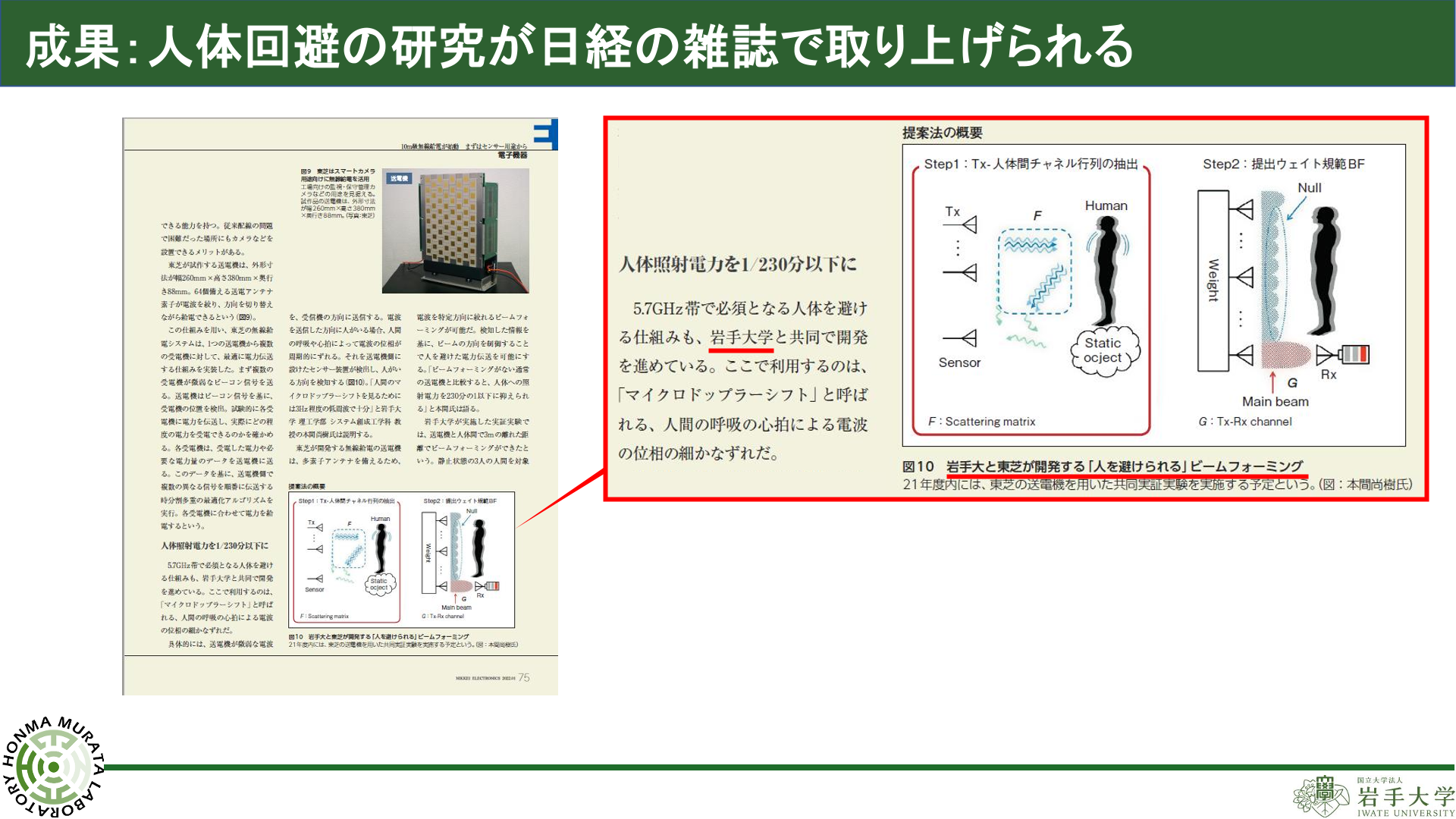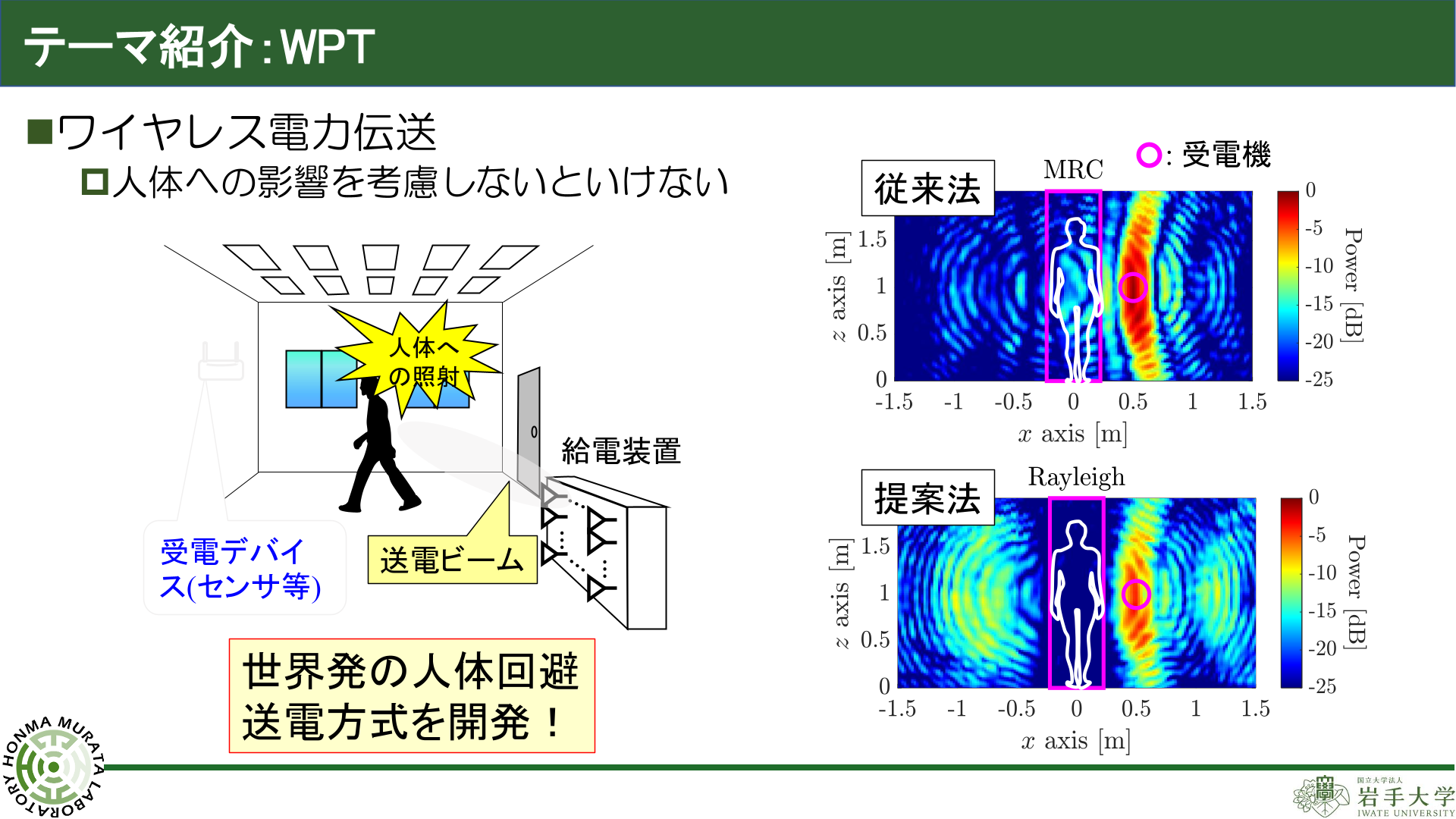 高速・大容量な無線通信を実現するアンテナシステム技術を中心に、 通信・センシング・無線給電への応用について研究を行っています。